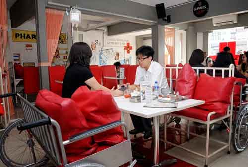 Bahkan para pelayannya pun mengenakan kostum ala perawat di rumah sakit.