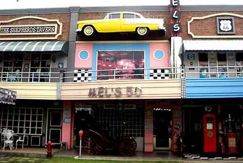 Kemudian naik ke lantai kedua, Anda akan melihat satu set peralatan makan Amerika seperti tahun 50-an lengkap dengan perabotan dan pernak-pernik yang khas di era tersebut.
