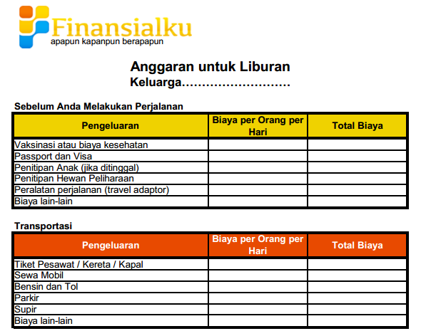 Budget Sheet untuk Merencanakan Biaya Liburan